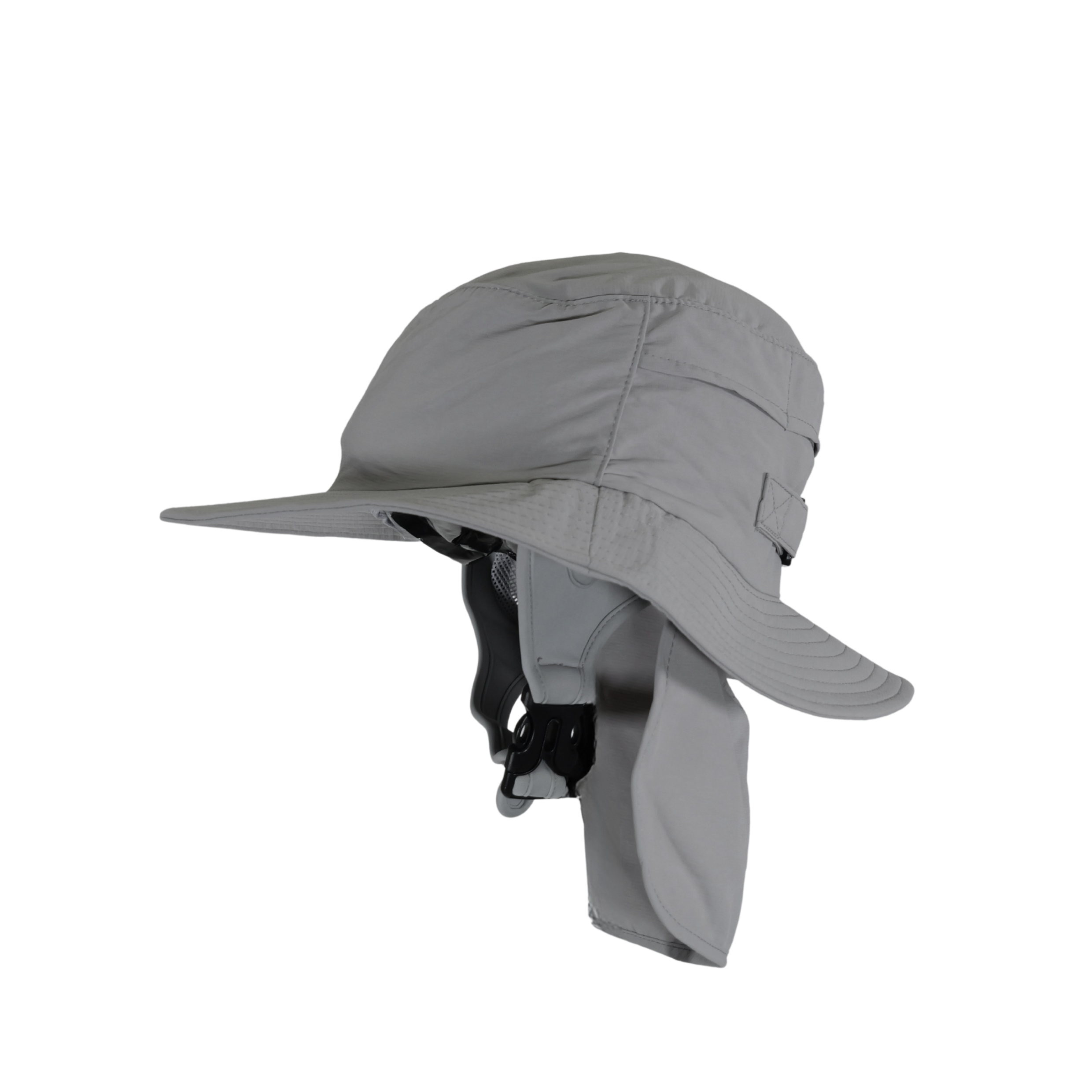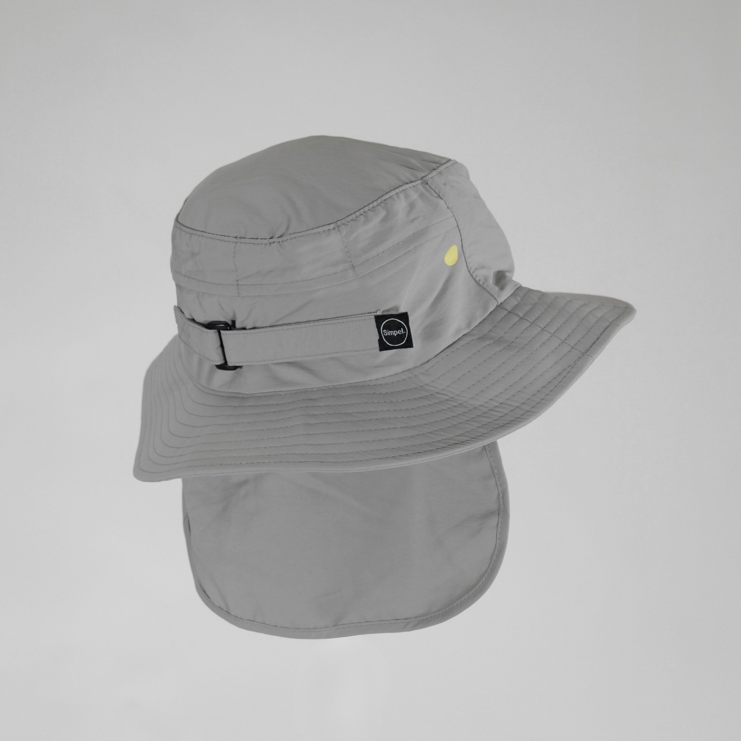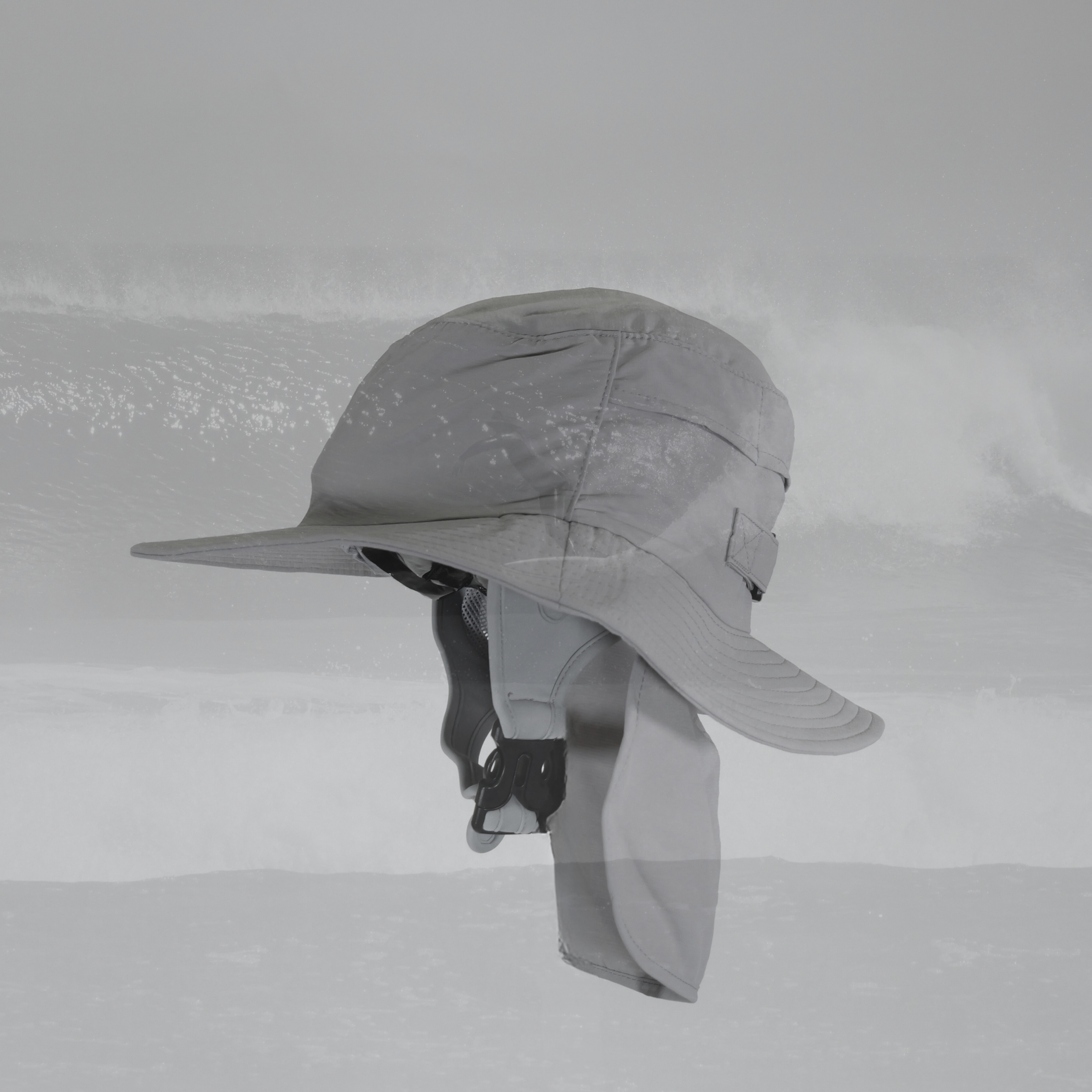 The Simpel Wide Brim Surf Bucket Hat in light grey is designed to provide dependable sun protection in the water. An adjustable neoprene chin strap and Velcro rear adjuster ensure a secure, one-size fit.