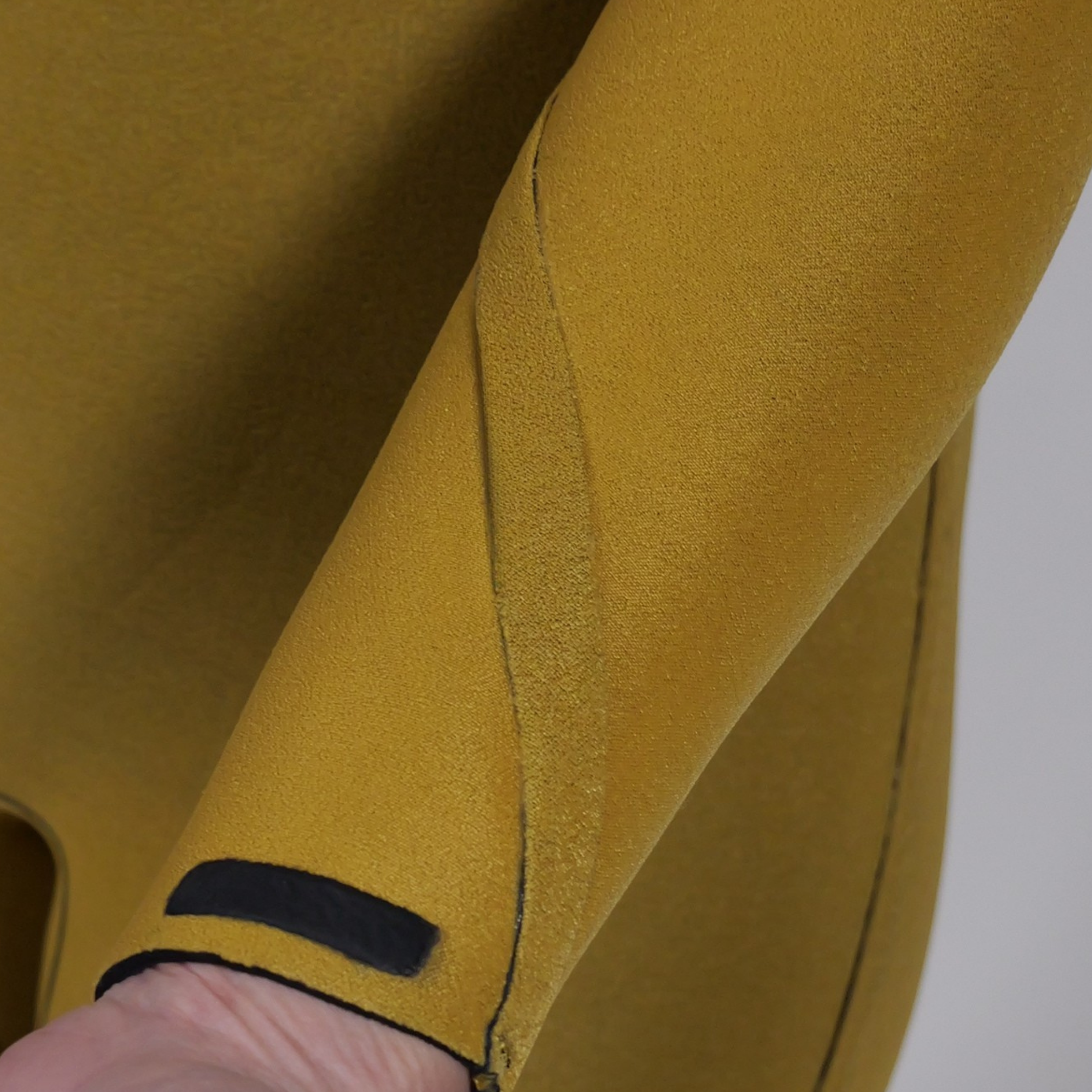 An established technique for a super strong seam. A blind stitch is created by sewing two layers of neoprene together and only partially penetrating the material, minimising the possibility of water entering the wetsuit and maximising flexibility.